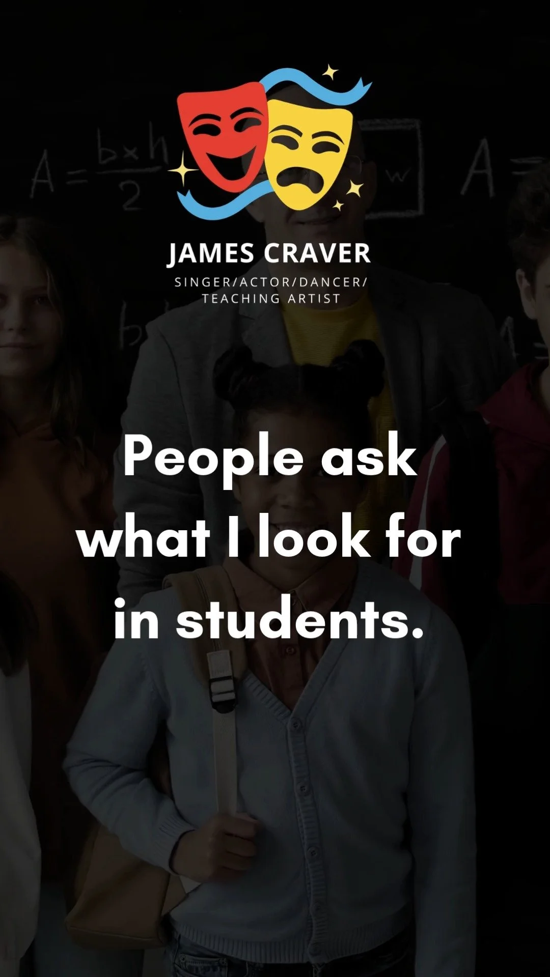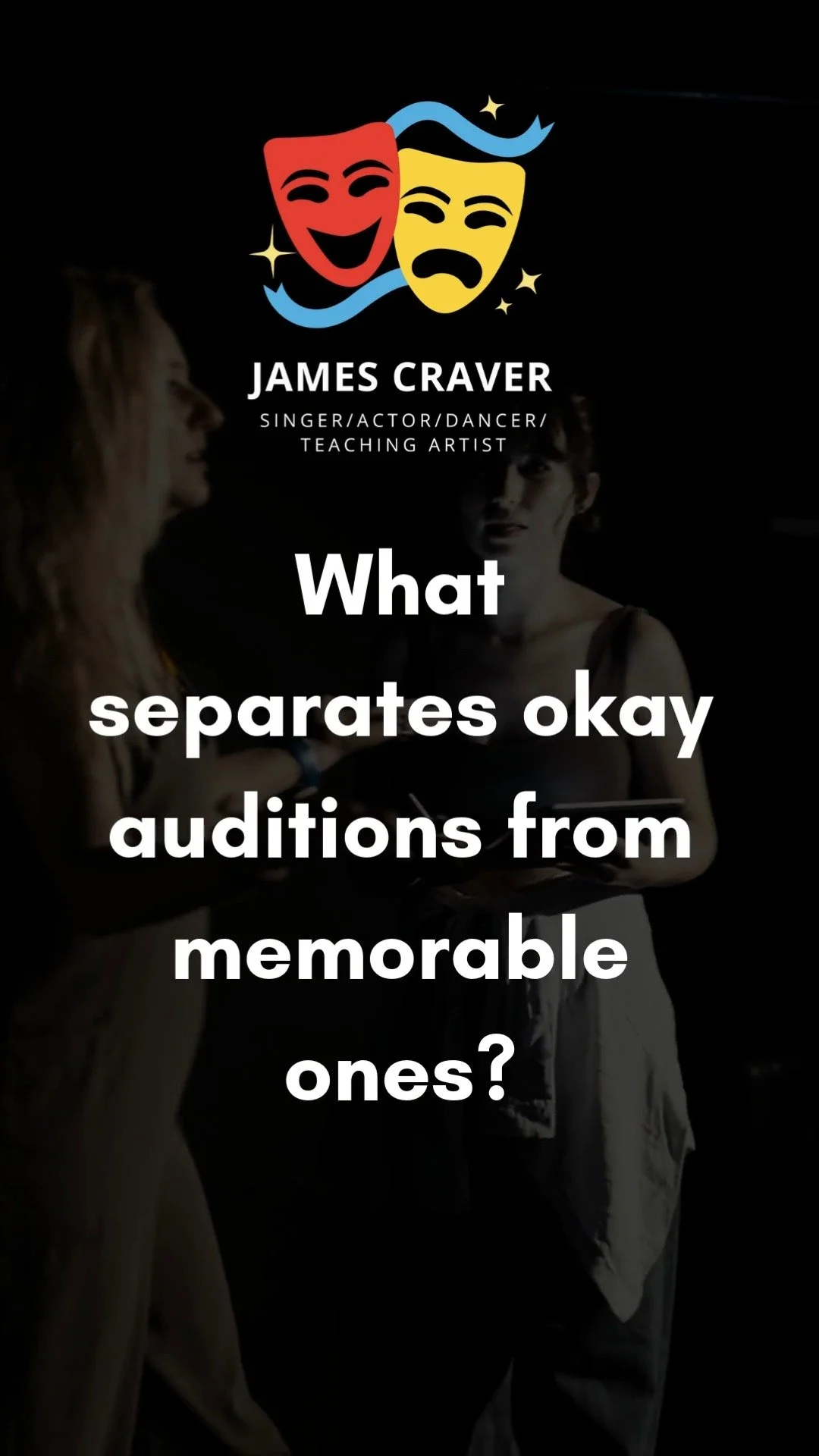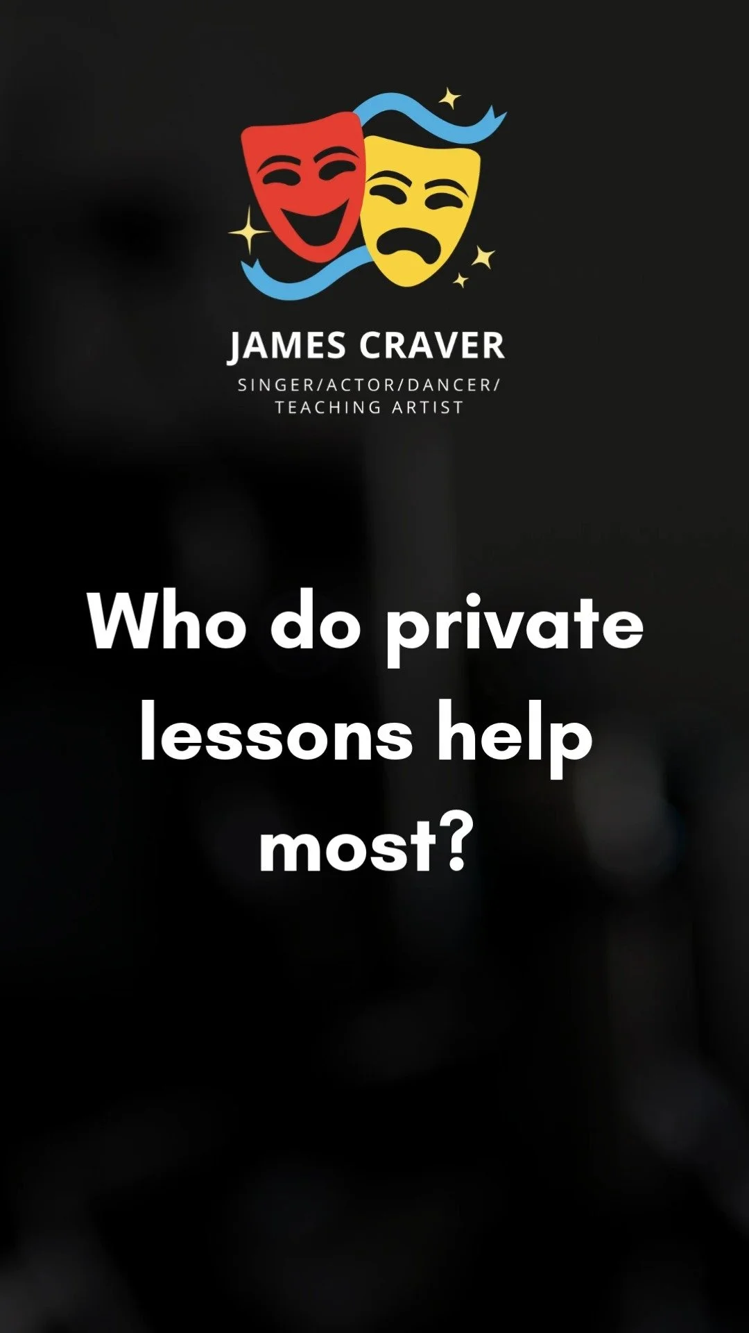 James believes that confidence is where it all begins in the journey toward a professional career in the performing arts. By creating a safe space for all students, he incorporates exercises specifically designed to build confidence and foster a healthy, creative atmosphere throughout both group and private lessons.